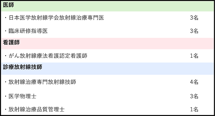 | 放射線治療専門放射線技師 | 4名 |