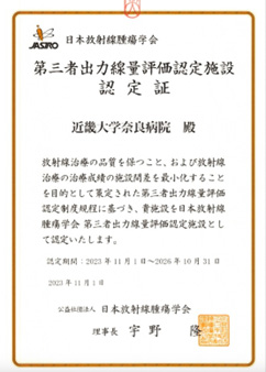 当院の放射線治療部門は、専門機関による第三者評価と認定を受けた施設です。(図13, 14)