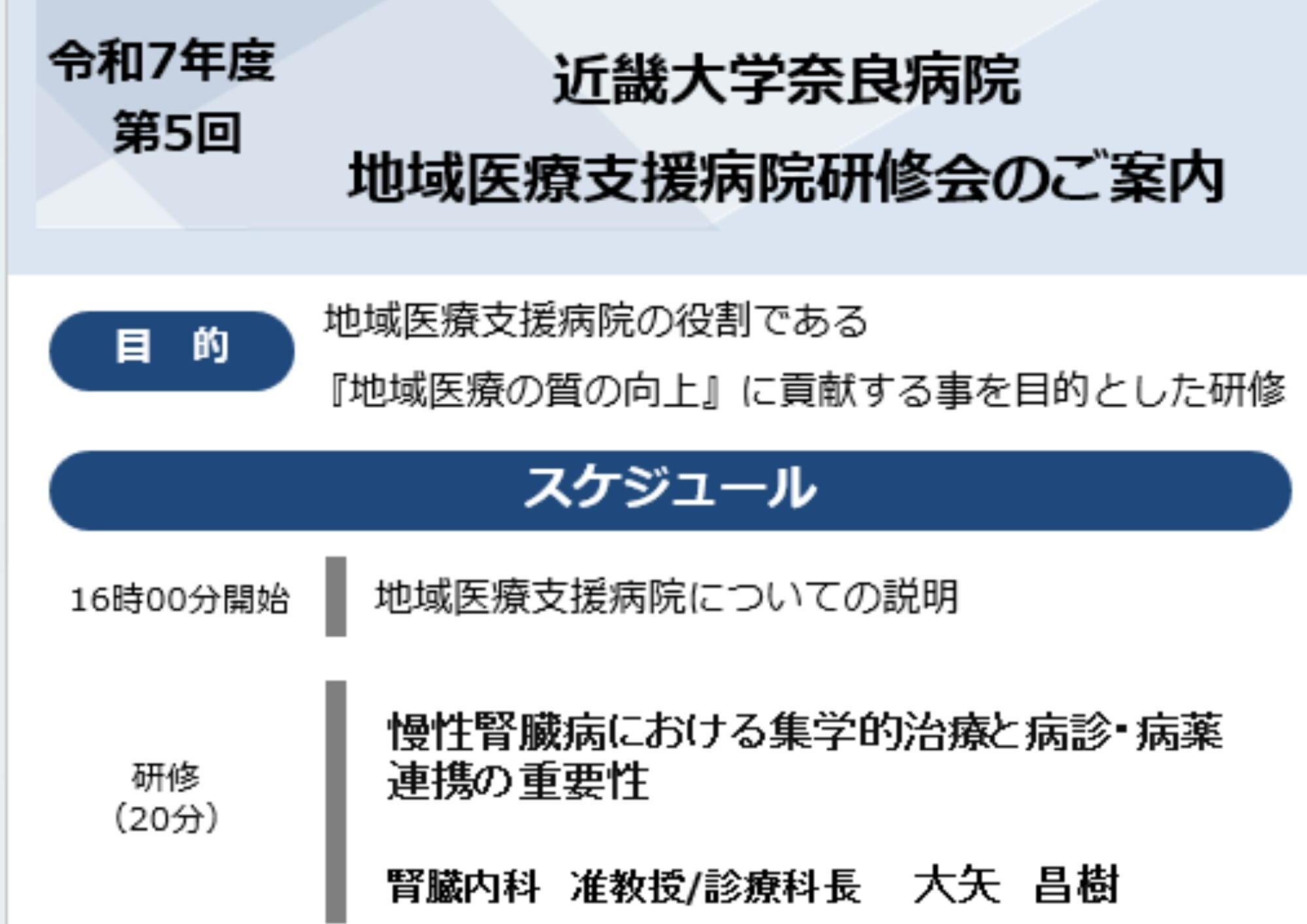 【医療従事者向け】令和7年度第2回地域医療支援病院研修会 ご案内
