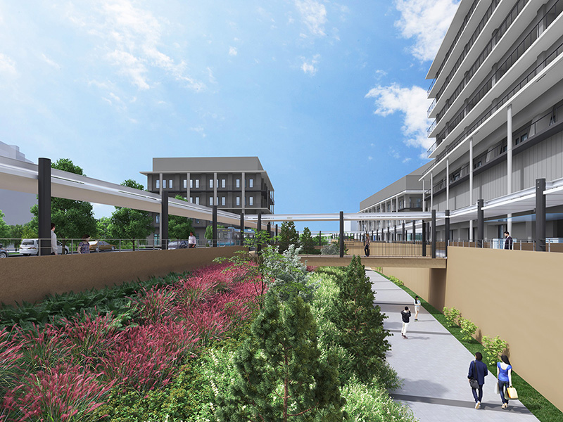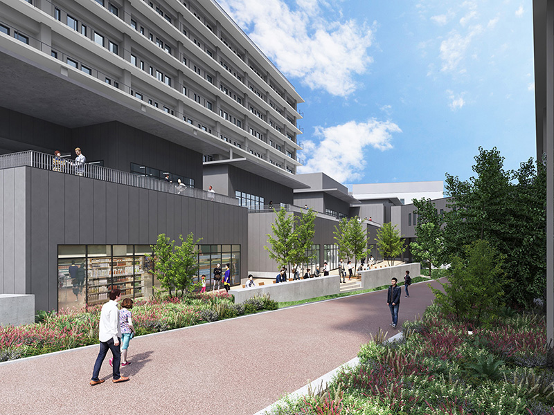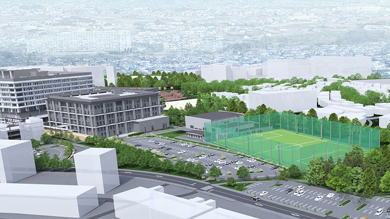 新しいキャンパスとその周辺は、自然環境と地域の特性を活かしたデザインが特徴です。写真を通じて、これから生まれる空間の雰囲気を感じていただけます。訪れる人々に快適さと新しい価値を提供する未来の施設をご覧ください。