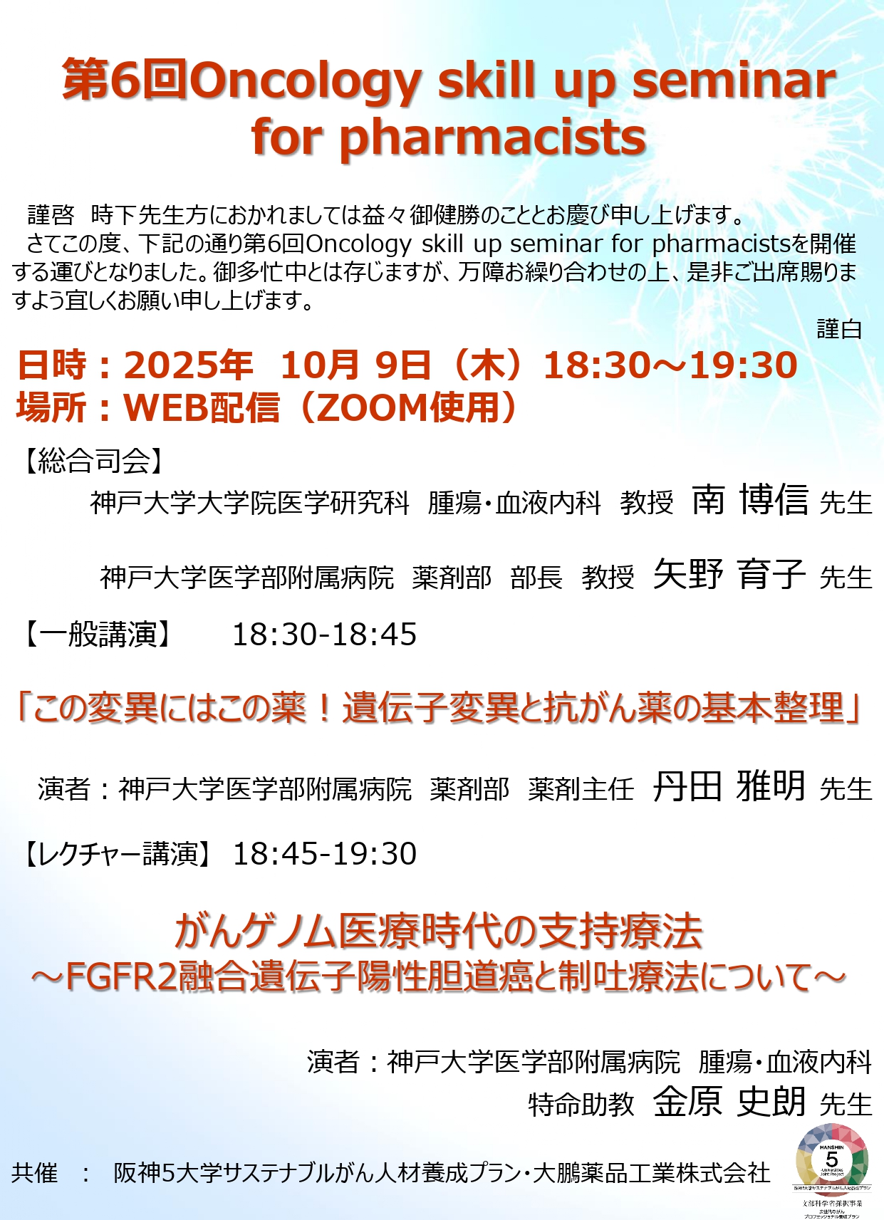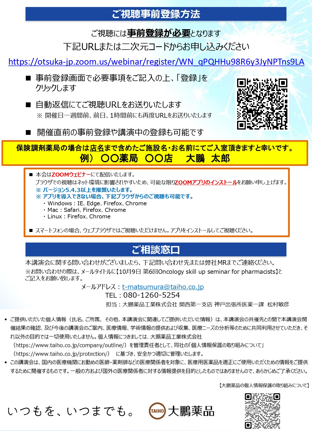 【10月9日開催】第6回Oncology Skill up seminar for pharmacists