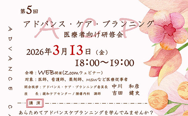 【参加無料/要事前申込】「第5回ACP(アドバンス・ケア・プランニング)医療者向け研修会」3月13日(金)開催のご案内