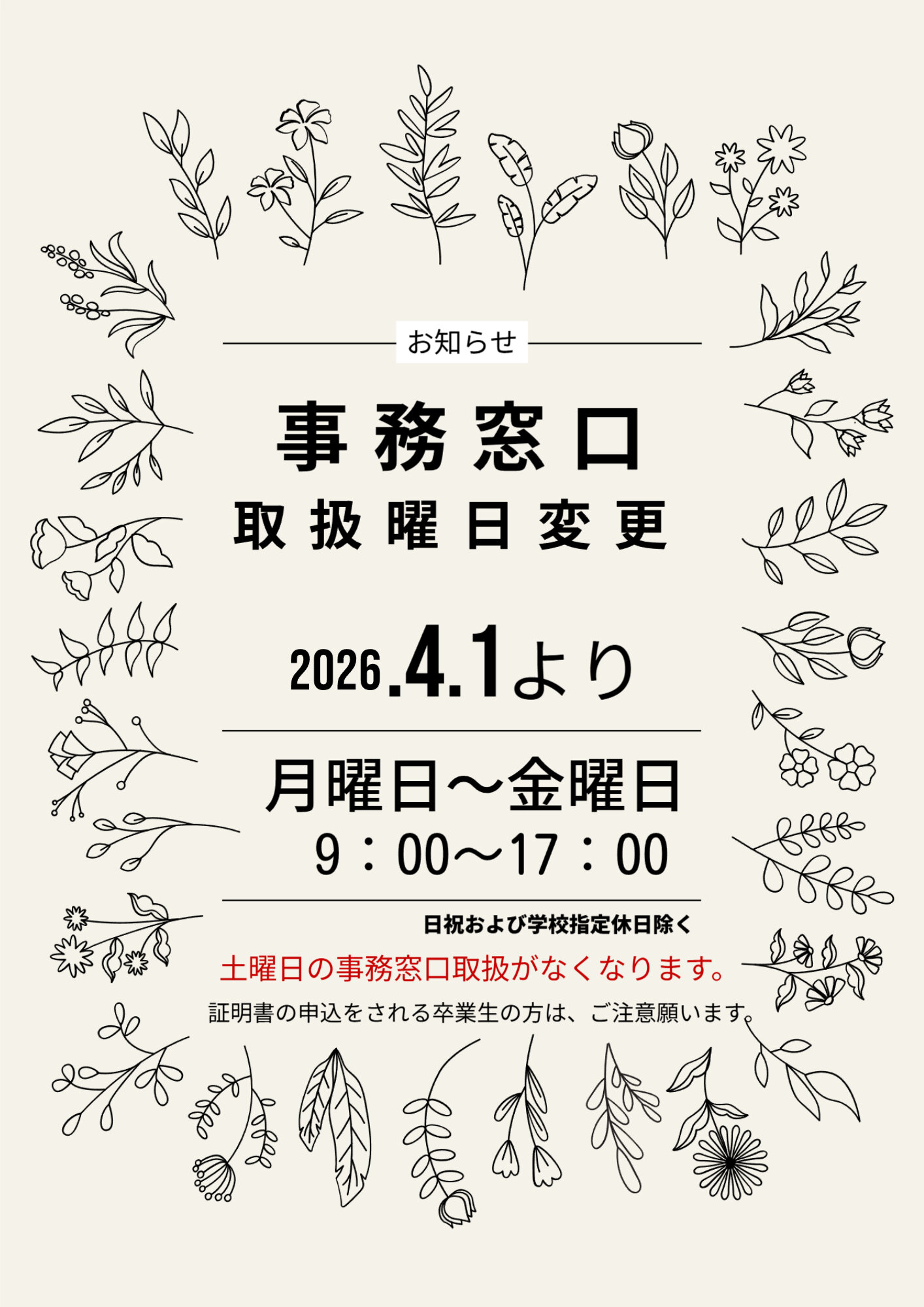 | 調査書 | 500円 | その他証明書 | 500円 |