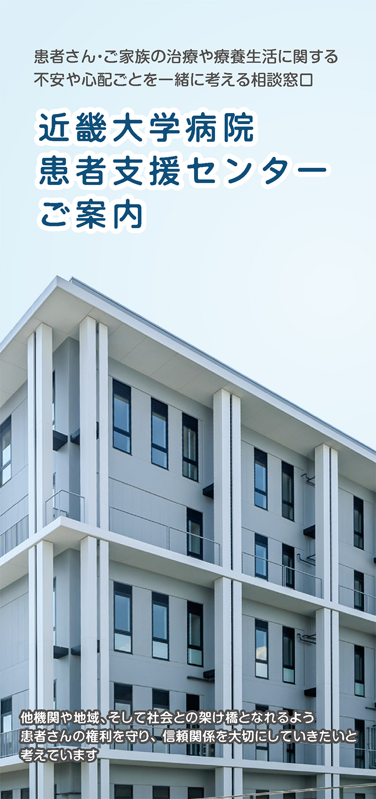 患者支援センターは、地域の医療機関からの患者さまの紹介および療養生活にまつわる様々なことに対応する総合相談窓口です。