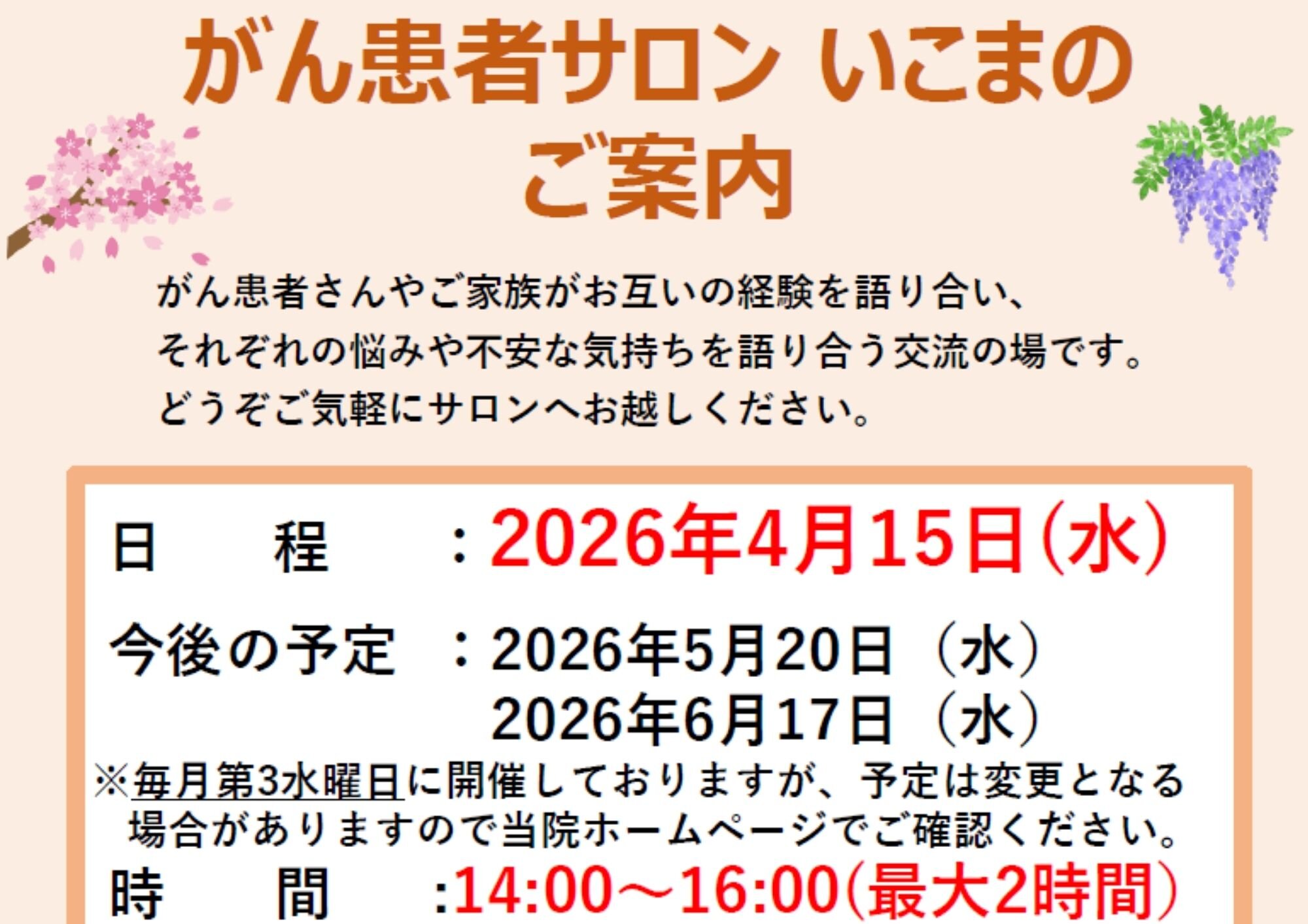 がん患者サロンいこま ご案内(3月18日)