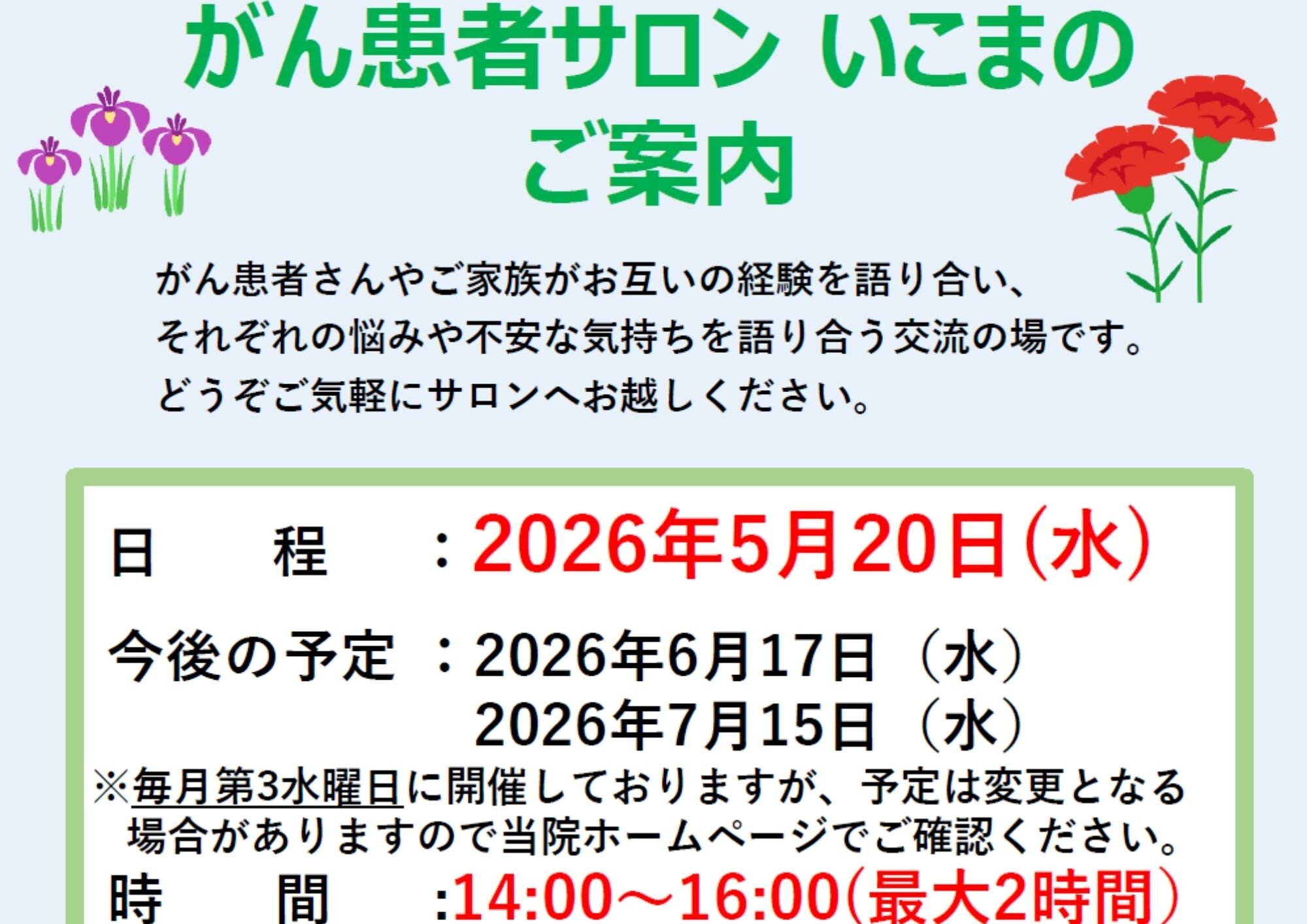 がん患者サロンいこまのご案内(5月20日)