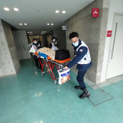 2隊目のDMATチームは、医師(1名)、看護師(2名)、業務調整員(2名)として臨床工学技士(1名)、事務職員(1名)の計5名で構成され、1月17日(水)~1月22日(日)、石川総合スポーツセンター一次待機避難ステーションを拠点に、ステーション内の管理業務、患者搬送等などの活動を22日(日)午前中まで行い、帰阪しました。