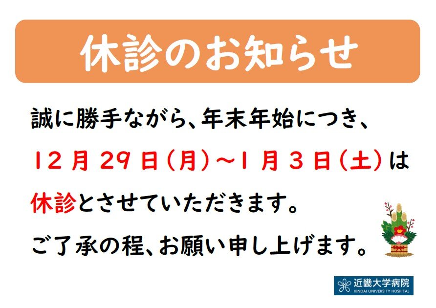 年末年始休診のお知らせ 2025年12月29日(月)~2026年1月3日(土)