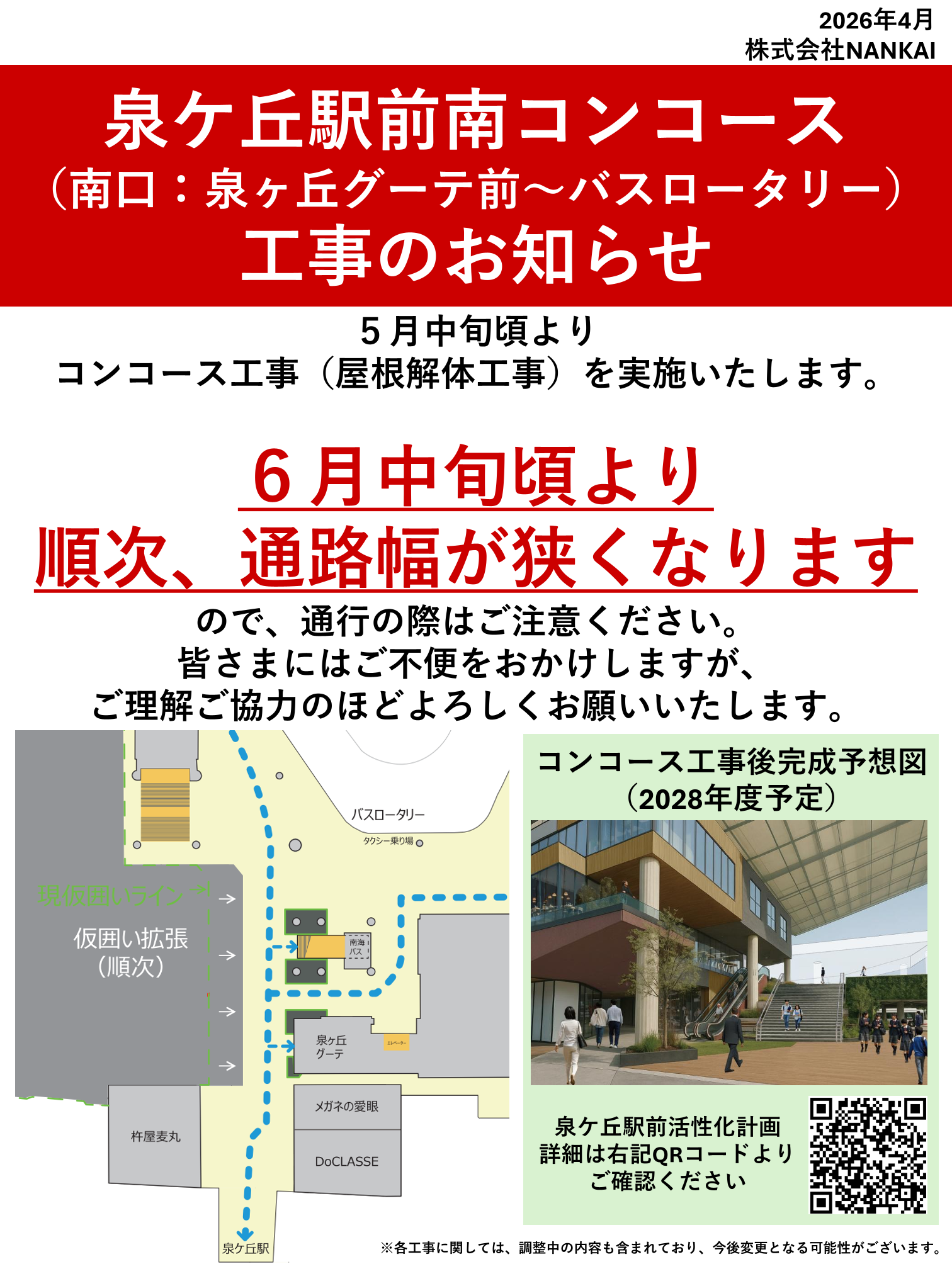 【ご来院の皆さまへ】泉ケ丘駅南口コンコース工事のお知らせ