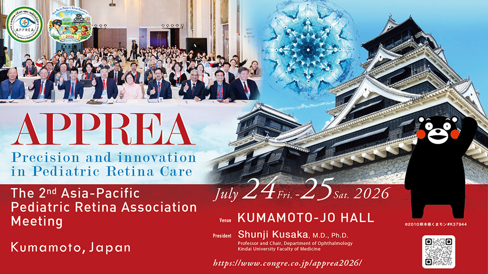 日下俊次が第2回APPREA (Asia-Pacific Pediatric Retina Association) Meeting を会長として2026年7月24日、25日と熊本市で開催予定です