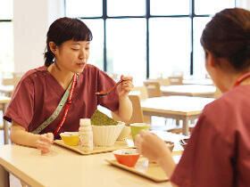 昼食や休憩時間にはお弁当を食べたり、おしゃべりをしたり、ゆっくりとくつろいだりする姿が見られます。